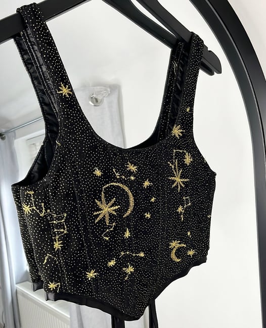 Gold embroidered star and moon corset