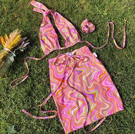 towelling drawstring shorts, matching top & scrunchie co-ord