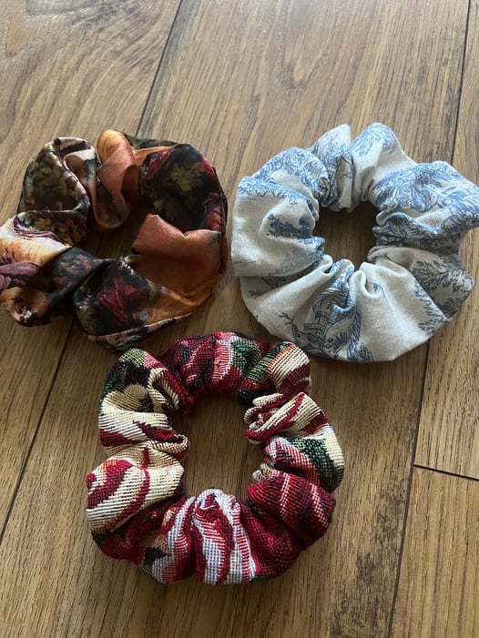 Handmade floral rose tapestry corset, mini skirt and scrunchie set