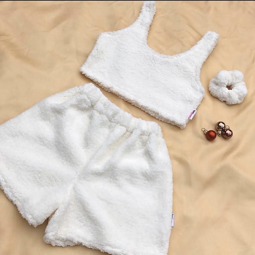 Half & half shorts & matching top & scrunchie set